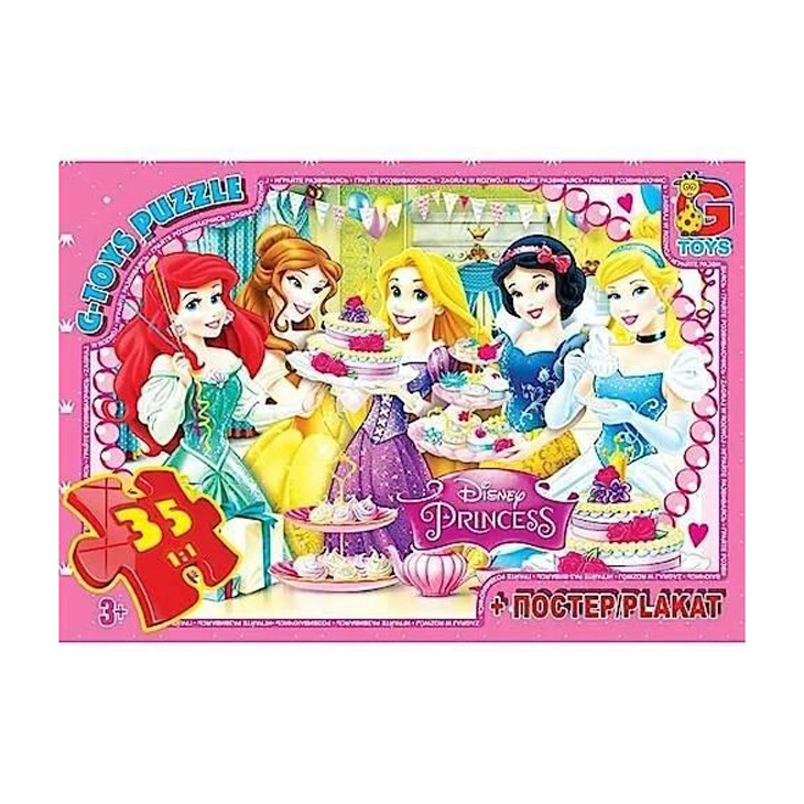 Торгова марка G-Toys, вироблено в Україні. Ліцензія. Комплектність: 35 пазлів, розмір полотна 210 мм х 300 мм + постер (плакат) з зображенням пазла. Пакування коробка : 19 см х 13 см х 3 см. Чудовий, яскравий пазл з щільного картону створений для дітей молодшого віку. Стимулює в дитині сенсорне сприйняття та інтелектуально-пізнавальний розвиток. Великі яскраві деталі, спеціально призначені для маленьких дитячих ручок, легко з 'єднуються між собою і сприяють розвитку дрібної моторики рук.