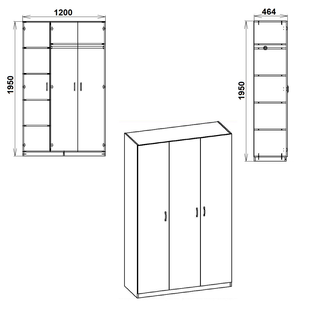 Шафа розстібна з ящиками Шафа-15 виготовлена з ламінованого ДСП товщиною 16 мм. Шафа містить три розстібні двері. Внутрішнє наповнення лівого відсіку – чотири полиці для речей, правого – штанга для одягу та полиця над нею. Добротна і проста шафа, з вдалим наповненням, ідеально впишеться в будь-яку кімнату, навіть невеликого розміру.