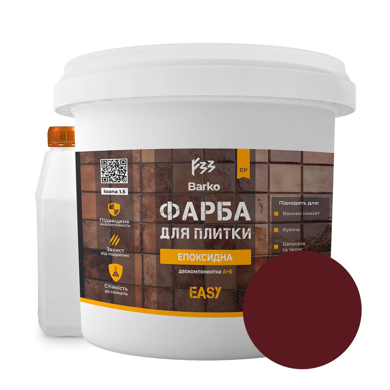 Епоксидна фарба для плитки Barko 4.5 кг Бордовий (Barko_4.5ch), 8944284Епоксидна фарба для плитки Barko 4.5 кг Бордовий (Barko_4.5ch), 8944284