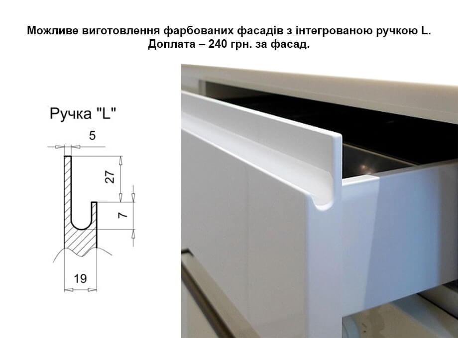 Кромка всіх елементів - протиударна ПВХ 0,5 мм.