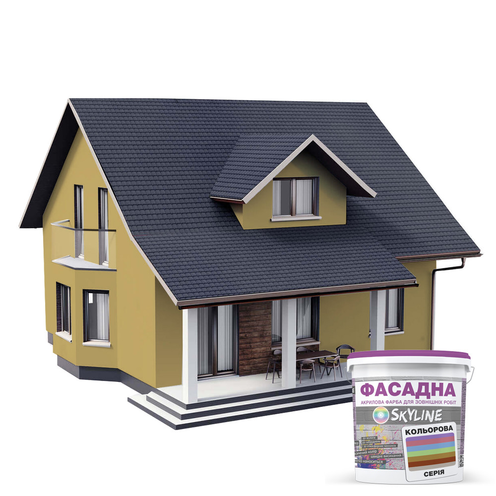 ФАСАДНА SKYLINE - Акрилово-латексна фарба високої якості для зовнішніх робіт, перевірена часом і має безліч позитивних відгуків, ТЕПЕР У ГОТОВИХ ТРЕНДОВИХ КОЛЬОРАХ.