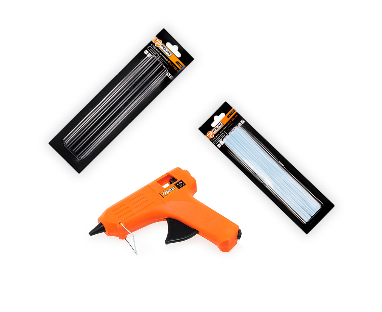 Набір клейовий Polax з пістолетом 11,2 мм 40W 6 прозорих стрижнів і 6 чорних (322-01), 8958232, фото 1