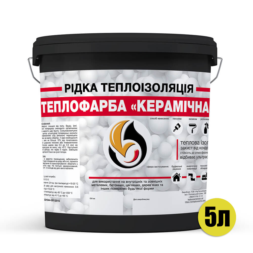 Теплоізоляційне рідкокамічне покриття, обмазувальна теплоізоляційна фарба-мастика на основі вакуумованих мікросфер з акриловим сполучним.Являє собою енергозберігаюче еластичне тонкошарове покриття, призначене для теплоізоляції трубопроводів, конструкцій будівель, обладнання, а також різних інженерних споруд, що обгороджують, має високі термоізоляційні та гідроізоляційні властивості.